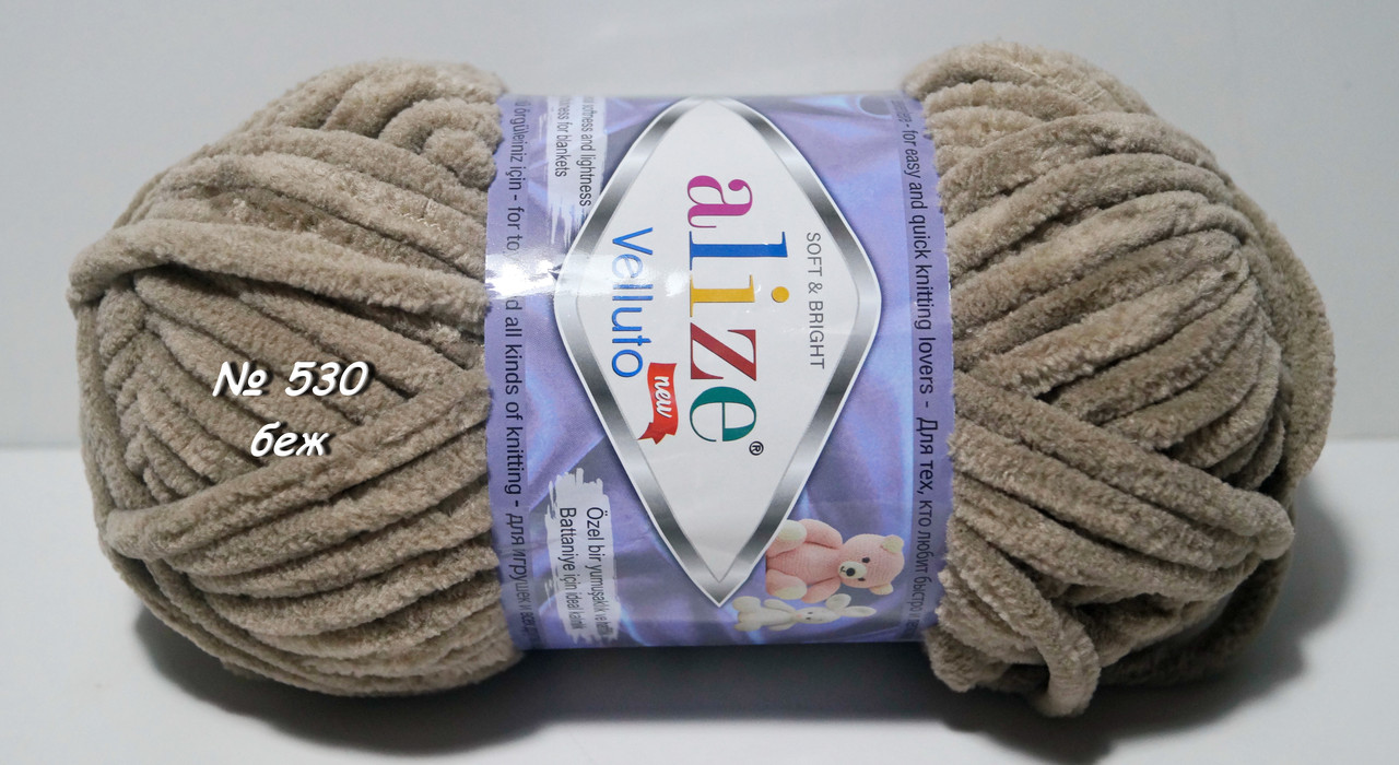 Нитки та пряжа для в'язання плюшева велюрова VELLUTO Веллюто ALIZE Алізе № 530 бежевий